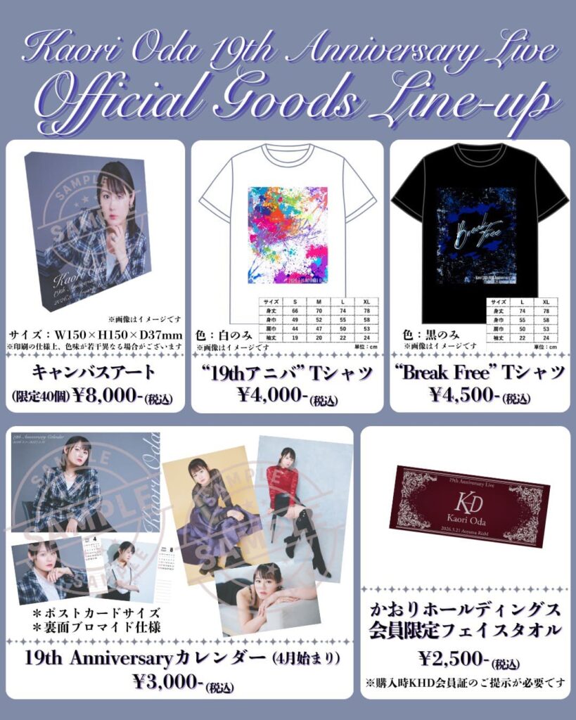【グッズ販売】Kaori Oda 19th Anniversary Live ラインナップと販売時間について